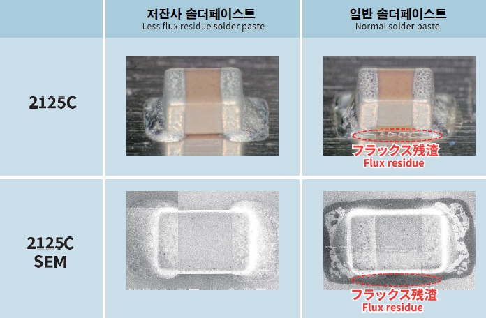 리플로우 후 플럭스 잔사가 거의 남지 않으며, 우수한 외관 품질을 제공합니다.